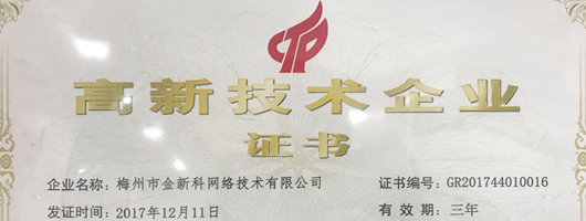2017年12月11日,國(guó)家高新技術(shù)企業(yè)認(rèn)定服務(wù)平臺(tái)對(duì)外公布了“廣東省2017年第二批擬認(rèn)定高新技術(shù)企業(yè)名單”,梅州市金新科網(wǎng)絡(luò)技術(shù)有限公司作為一家互聯(lián)網(wǎng)信息化服務(wù)類(lèi)高科技產(chǎn)業(yè)的公司,順利通過(guò)認(rèn)定,榮登榜單之中!
